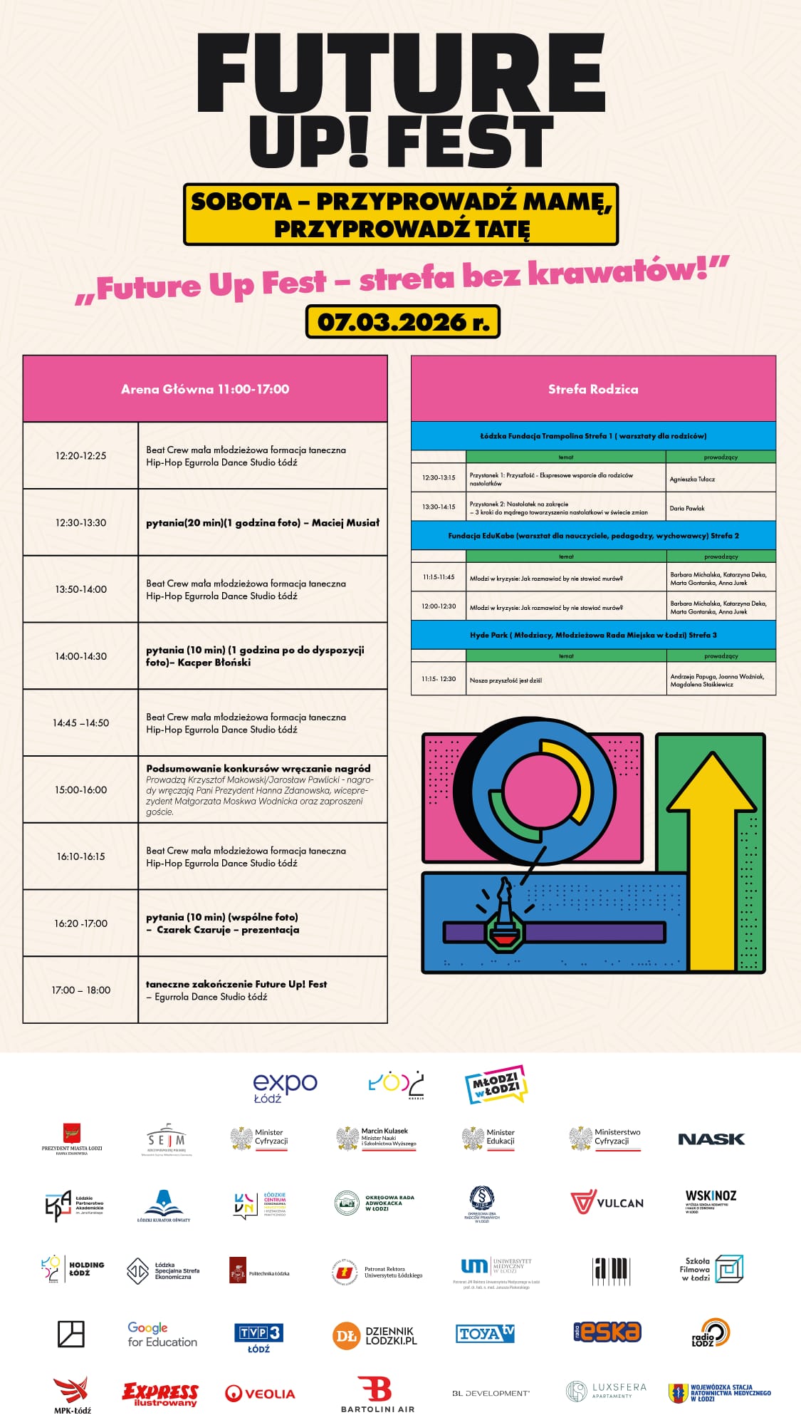 Oprócz uczniów byli ich rodzice oraz doradcy zawodowi. Warsztaty zorganizowaliśmy we współpracy z Urzędem Dozoru Technicznego Oddział w Łodzi. Gościliśmy wielu przedstawicieli firm i urzędów, Obecni byli Łódzkie Centrum Doskonalenia Nauczycieli i Kształcenia Praktycznego, Państwowa Inspekcja Pracy, Polskie Stowarzyszenie Producentów Dźwigów, OTIS, KONE, ORONA , DŹIWG-SERVICE, Strabag, Arsem, Boels, Wojskowe Zakłady Lotnicze nr 1, Aflofarm, Colas, TME, Vandemoortele.(...czytaj więcej....)