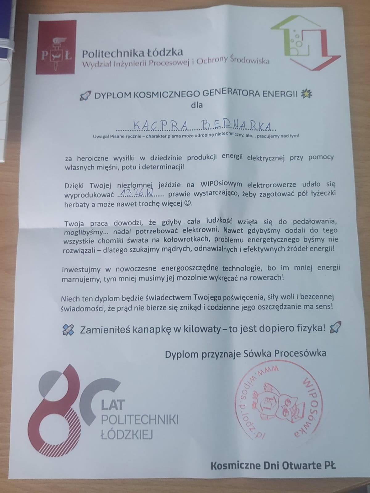 W dniu 28 listopada uczniowie naszej szkoły uczestniczyli w dniach otwartych Politechniki Łódzkiej. Tegorocznym hasłem przewodnim było "Wejdź na Orbitę PŁ". Młodzież uczestniczyła w ciekawych wykładach w strefie inspiracji "Kosmiczne błędy matematyczne" oraz "Satelity obserwujące Ziemię - jak i dlaczego patrzymy na naszą planetę z kosmosu". Mieli również okazję uczestniczyć w przeglądzie projektów studentów, które zmieniają naszą przyszłość "Sięgnij gwiazd!" Nie obyło się bez konkursów, elementarnych kół fortuny, wielu upominków a także nagród - dwoje z uczniów wygrało kartę podarunkową do Empiku! Gratulujemy! Fascynujący czas spędzony w murach Politechniki Łódzkiej zakończony był warsztatami "Kahoot kosmiczny", "Kosmiczna rakieta" oraz "Projektowanie bazy kosmicznej na Księżycu".