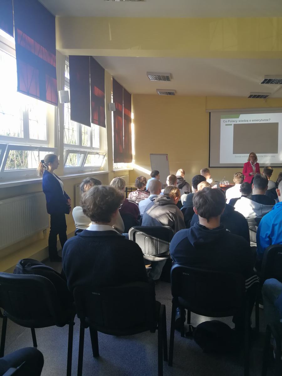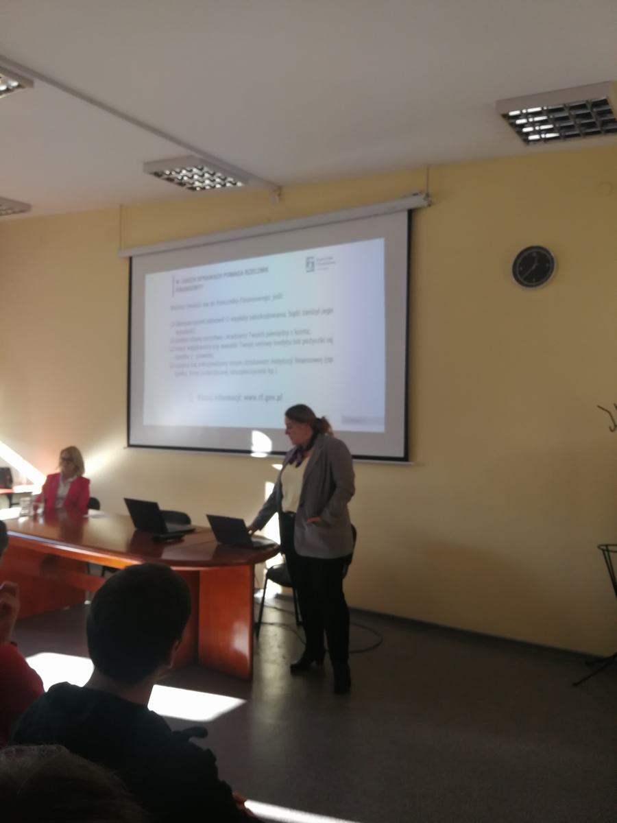 W dniu 7 listopada 2025 r. obchodziliśmy w naszej szkole Dzień Przedsiębiorczości. Problematyka tegorocznej edycji dotyczyła ubezpieczeń społecznych oraz kompleksowego wsparcia oferowanego przez rzecznika finansowego. Gośćmi wydarzenia były pracownice ZUS w Łodzi oraz Rzecznik Finansowy obejmujący wsparciem region łódzki i świętokrzyski. Tematyka wydarzenia bardzo zainteresowała uczniów, czego dowodem były zadawane pytania i indywidualne rozmowy z Paniami.