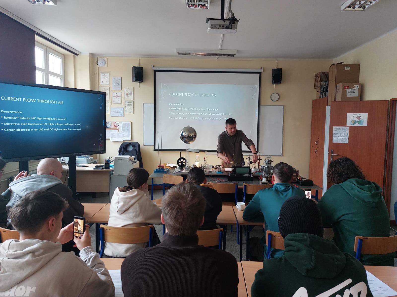 Po zakończonych warsztatach został rozegrany mecz towarzyski w koszykówkę a potem nasi goście obejrzeli zajęcia w klasie o profilu technik urządzeń dźwigowych u pana profesora Roberta Jarzębińskiego.