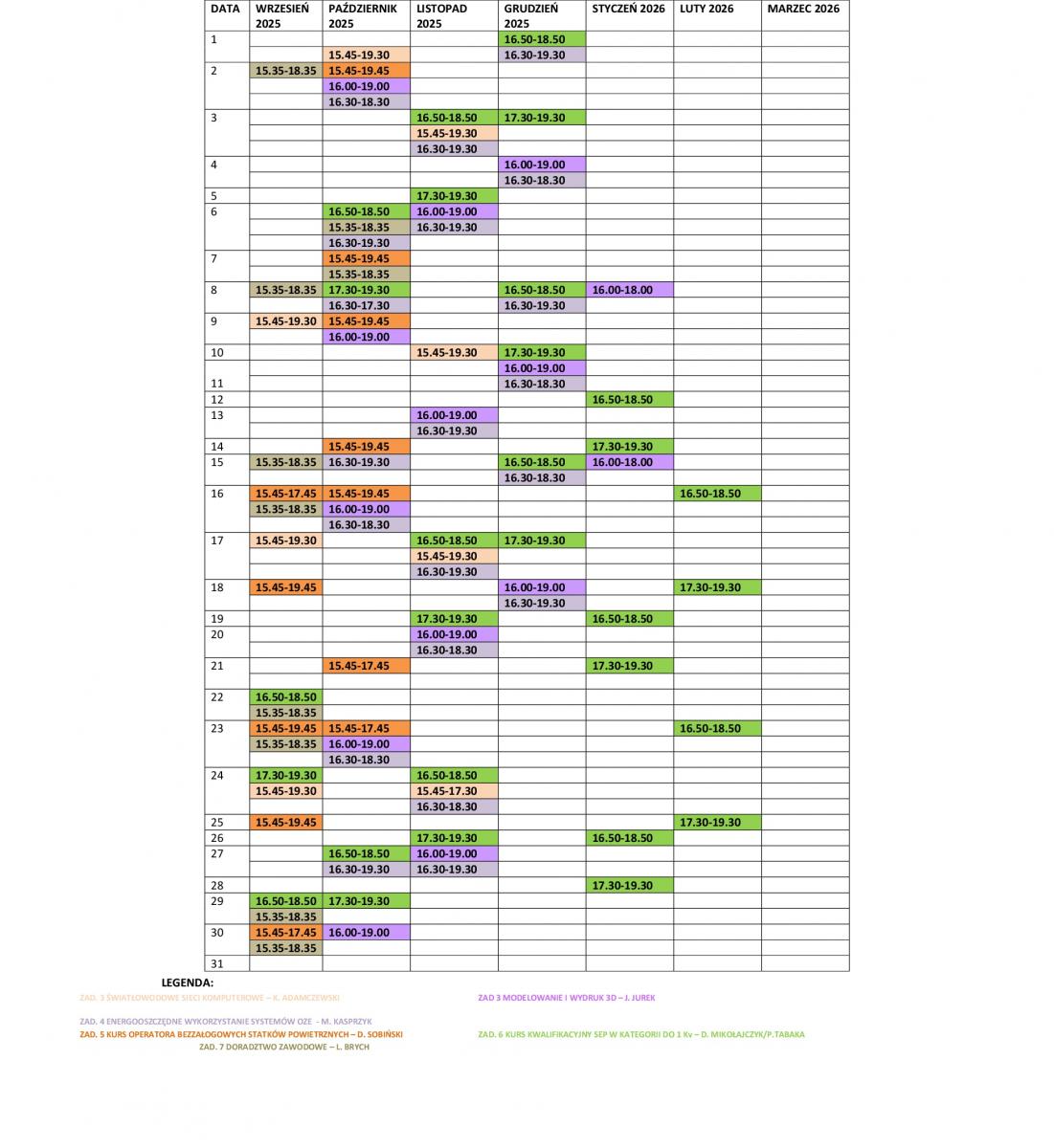 Aktualizacja harmonogramu zajęć w Zespole Szkół Edukacji technicznej w Łodzi