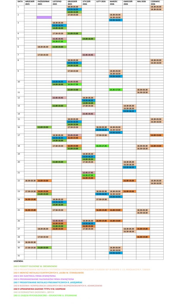 Edukacji Technicznej (ZSET), realizowane we współpracy z otoczeniem społ.-gospodarczym, ukierunkowane na wspieranie równego dostępu do dobrej jakości, włączającego kształcenia i szkolenia w szczególności w odniesieniu do grup w niekorzystnej sytuacji, poprzez podniesienie kompetencji/kwalifikacji min. 10 n-li (5K/5M) ZSET, adaptację i doposażenie pracowni i warsztatów szkolnych, organizację dla 120 (5K/115M) uczniów ZSET: staży, doradztwa edukacyjno-zawodowego oraz zajęć/szkoleń/kursów z obsługi podestów ruchomych, projektowania instalacji systemów fotowoltaicznych z SEP w grupie G 1, montażu instalacji elektrycznych, kursów zewnętrznych doboru i programowania falowników, SEE Electrical), projektowania instalacji i układów pneumatycznych, budowy i konfiguracji lokalnych sieci bezprzewodowych, uprawnień gazowych typu F oraz psychologiczno – edukacyjnych realizowanych w terminie od 1.09.2025r. do 31.08.2027r.