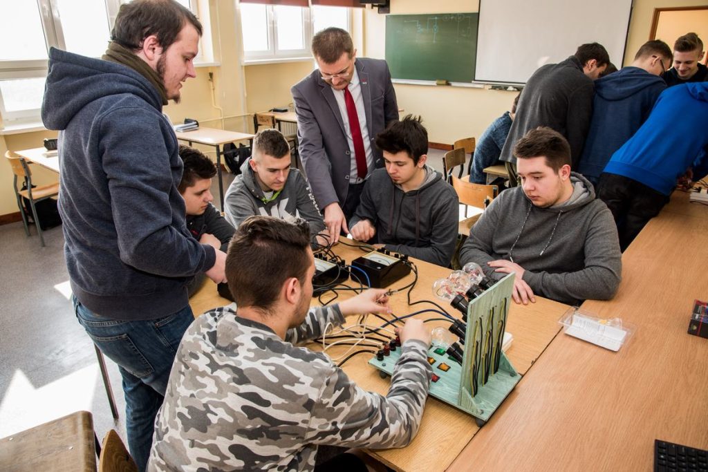 Będziesz uczył się w pracowniach wyposażonych w nowoczesny sprzęt, którym posługują się prawdziwi fachowcy. To nie symulatory i naśladujące rzeczywiste urządzenia modele, ale aparaty prosto z hurtowni elektrycznych, obecne w każdym, nowoczesnym zakładzie przemysłowym. Będziesz chodził w naszej szkole „śladami prądu”…