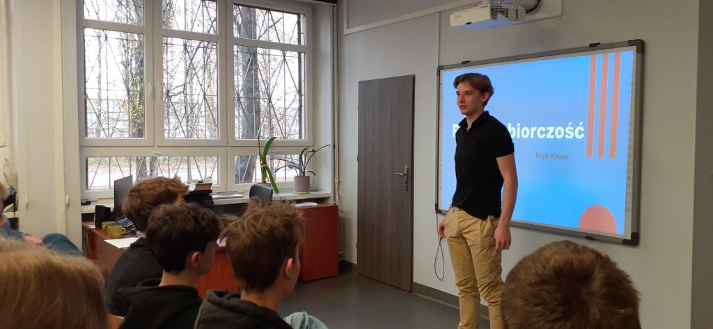 Dzień Przedsiębiorczości staje się cykliczną imprezą wpisaną w kalendarz naszej szkoły. W tym roku szkolnym obchodziliśmy go 19 listopada 2024 r. Wydarzenie skierowane było do uczniów klas trzecich. W spotkaniu uczestniczyły przedstawicielki Powiatowego Urzędu Pracy w Łodzi oraz absolwentka ZSET. Pracownice PUP zapoznały młodzież z wymogami i formami wsparcia przy zakładaniu własnej firmy. Jednak największe zainteresowanie wzbudziły dotacje finansowe, które można otrzymać z Urzędu na rozpoczęcie własnej działalności gospodarczej. W dalszej części uczniowie zostali zapoznani z działalnością nierejestrową przez nauczycielkę naszej szkoły. Na zakończenie „Młodzi Przedsiębiorcy” ze szkoły – Eryk uczeń klasy 3ed i Zuzanna – tegoroczna absolwentka, zaprezentowali i opowiedzieli o swoich początkach w „Małym Biznesie”. Choć działania, które podejmowali nie zawsze były łatwe i opłacalne, to doceniają zdobyte doświadczenie, pokonują przeszkody i cieszą się, że mogą rozwijać swoje pasje.