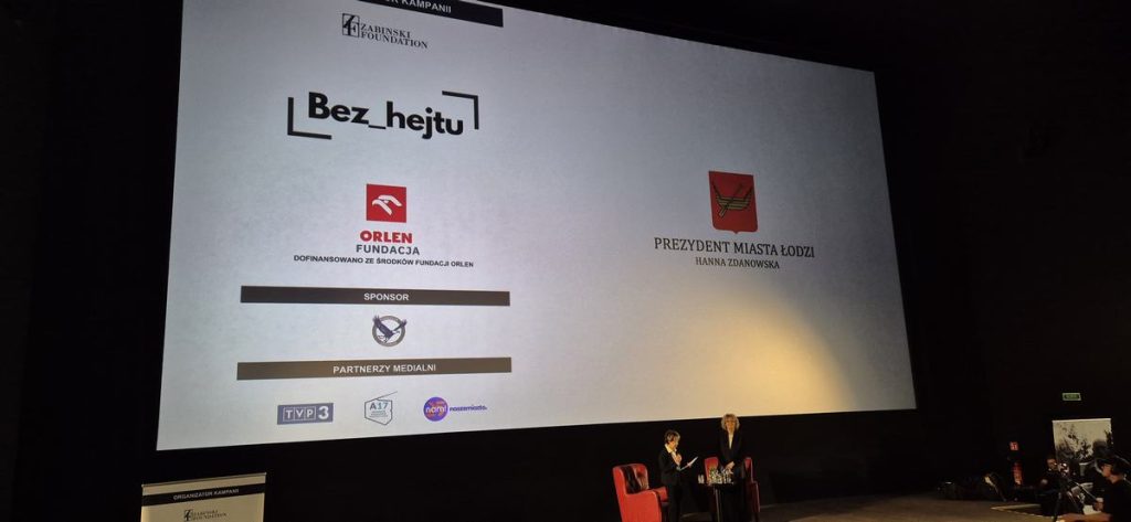7 października 2025 r w kinie Helios odbyło się spotkanie dla młodzieży w ramach Kampanii „Bez Hejtu” pod honorowym patronatem Prezydent Miasta Łodzi Pani Hanny Zdanowskiej organizowane przez Fundację Żabińskich. Wśród uczestników z wielu szkół ponadpodstawowych znaleźli się także nasi uczniowie klasy 1ED i 1MT. W ramach spotkania wyświetlany był film „Azyl” w reż. Niki Caro, po którym odbyła się dyskusja poprowadzona przez dziennikarkę Marta Grzywacz z udziałem widzów.