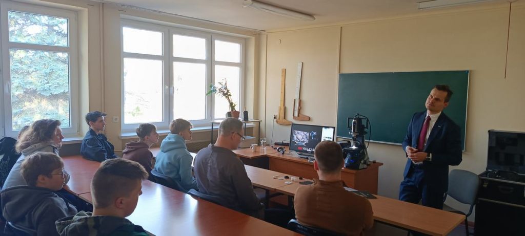 Uczniowie kierunków technicznych mieli unikalną okazję zobaczyć w akcji urządzenie, które redefiniuje standardy w dziedzinie inspekcji przemysłowej i kontroli jakości. Pan Dawid Chojnowski zaprezentował niesamowitą rozdzielczość obrazu 4K, ogromną głębię ostrości oraz zaawansowane funkcje pomiarowe 2D i 3D, które ten sprzęt wykonuje w czasie rzeczywistym.