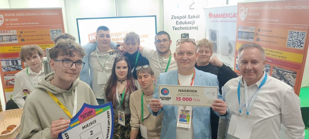Każda praca musiała zawierać: – opis problemu, – cel projektu i grupę odbiorców, – opis proponowanego rozwiązania, – przewidywane efekty. Nasi uczniowie zajęli II miejsce! Nagrodzony zespół, składał się z trzech uczniów klasy 3 ed: Aleksandra Baniewicza, Ksawiera Bogulasa, Igora Włodarczyka. Opiekunem chłopaków był ich wychowawca Włodzimierz Drewnowski. Uczniowie stworzyli rolkę prezentującą zawód technika urządzeń dźwigowych w kontekście rozwoju miasta Łodzi. Temat ich pracy – Zaklinacze wind. Gratulujemy i bardzo się cieszymy!!!