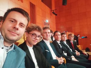 W dniu 17 października 2024 roku grupa uczniów wraz z Panem Damianem Mikołajczykiem wzięła udział w gali podsumowującej Wojewódzki konkurs pn. „Kręci Mnie Mój Zawód” w Sali Koncertowej Akademii Muzycznej w Łodzi. Konkurs zorganizowało Centrum Rozwoju Edukacji województwa łódzkiego w ramach projektu „Zbudowanie systemu koordynacji i monitorowania regionalnych działań na rzecz kształcenia zawodowego, szkolnictwa wyższego oraz uczenia się przez całe życie, w tym uczenia się dorosłych” w którym to projekcie braliśmy czynny udział jako szkoła.