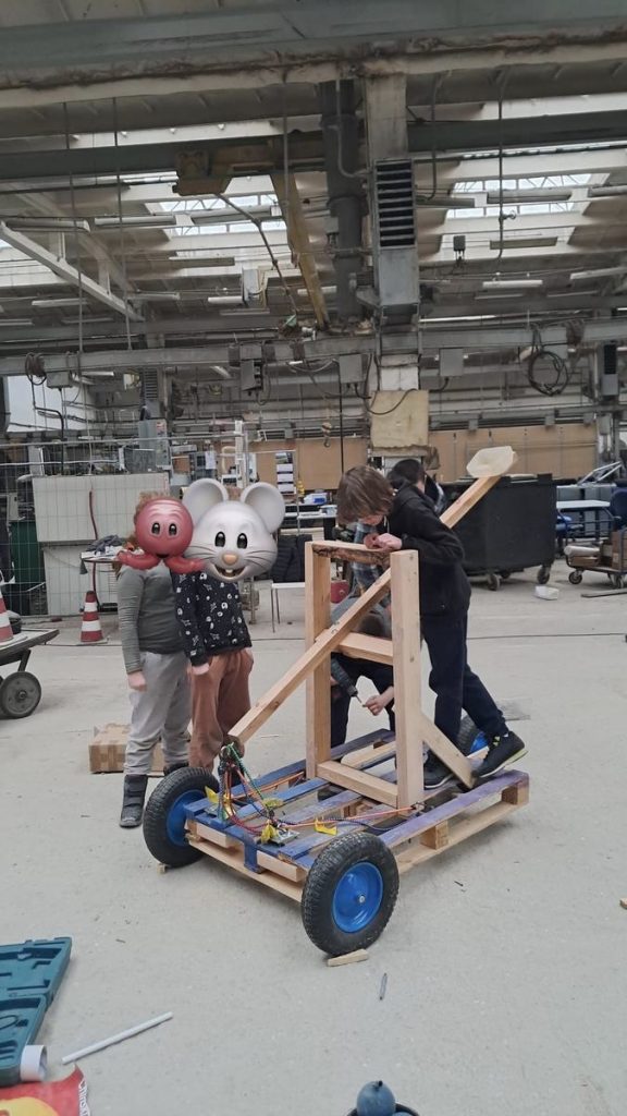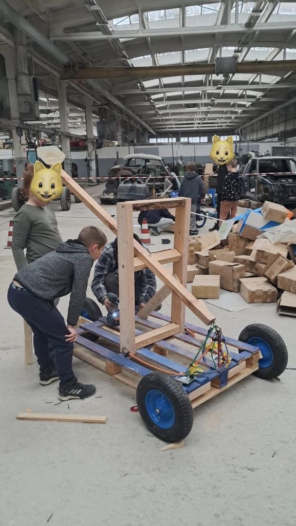W trakcie ferii zimowych zorganizowaliśmy warsztaty – zabawę dla przedszkolaków i młodszych uczniów szkoły podstawowej. Pod okiem i z pomocą naszego nauczyciela przedmiotów zawodowych – Huberta Kowalskiego dzieciaki budowały katapultę, która powstała z kartonów, pozyskanych desek i innych „skarbów”, które zawsze można znaleźć w szkolnym warsztacie. Wszystkie dzieciaki uczyły się prawidłowo trzymać wkrętak, z zapałem łączyły deseczki, posługiwały się miarką i malowały gotową katapultę.