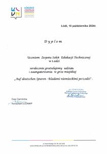 10.10. 2024 uczniowie naszej szkoły brali udział w grze miejskiej „Śladami Niemców w Łodzi”.