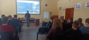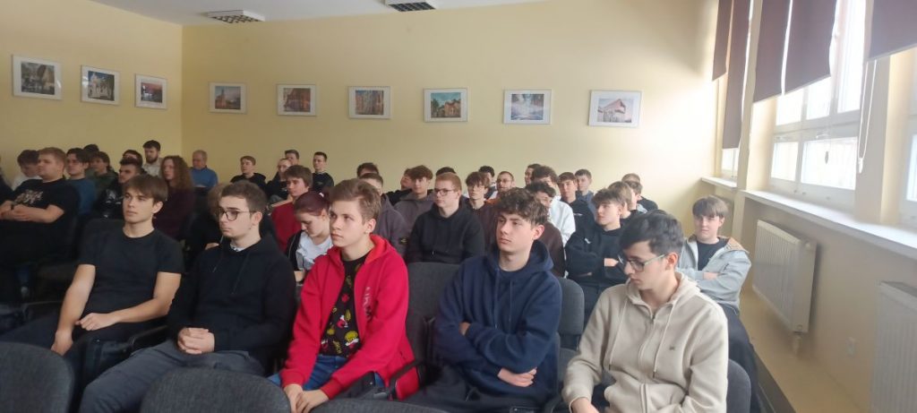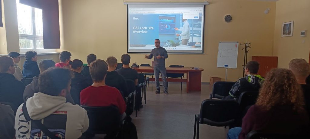Podczas spotkania pan Dominik Bartosiak zaprezentował profil działalności firmy FLEX, omówił aktualne projekty oraz technologie wykorzystywane w zakładach produkcyjnych. Uczniowie zapoznali się z procesami wytwarzania, organizacją pracy oraz standardami jakości obowiązującymi w branży. Prelegent zwrócił również uwagę na kompetencje i umiejętności, które są szczególnie cenione u kandydatów rozpoczynających karierę techniczną.