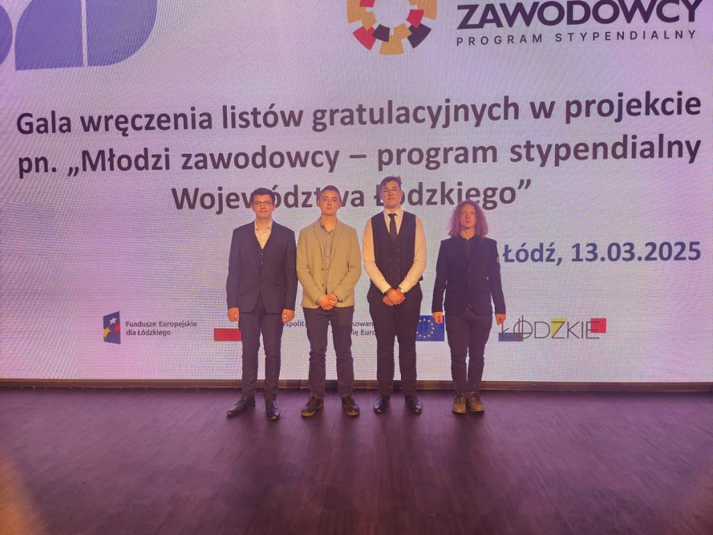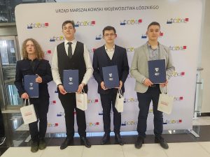 W dniu 13 marca czterech naszych uczniów Mateusz Milczarek z kl. 5 tmu, Wiktor Bełdowski z kl. 3 om, Antoni Rusek z kl. 4 in i Bartosz Brygier z kl. 4 mt, odebrało z rąk Pani Marszałek Joanny Skrzydlewskiej stypendium w programie „Młodzi Zawodowcy – program stypendialny Województwa Łódzkiego”. Towarzyszyły im opiekunki w programie, panie: Izabela Frąc i Grażyna Woźniak. Gratulujemy!!