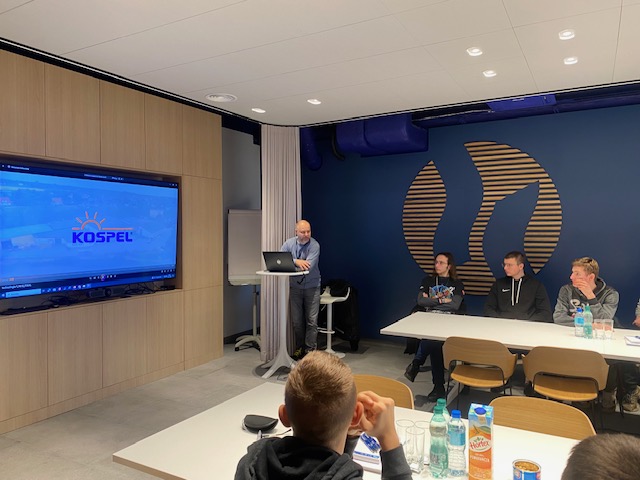 Drugiego dnia udaliśmy się do firmy Kospel. Kospel to polska firma, która od 1990 roku z powodzeniem działa na rynku jako producent nowoczesnych systemów grzewczych i urządzeń do podgrzewania wody użytkowej. Firma zdobyła uznanie dzięki wprowadzaniu innowacyjnych rozwiązań w technologii grzewczej. Kospel specjalizuje się w produkcji elektrycznych kotłów, pomp ciepła, podgrzewaczy wody oraz paneli słonecznych, które wyróżniają się wysoką efektywnością energetyczną i przyjaznością dla środowiska.