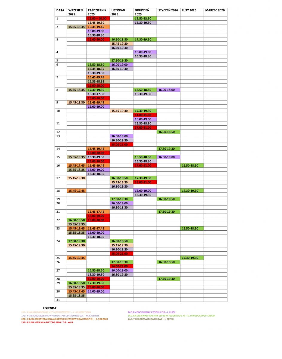 Aktualizacja harmonogramu zajęć w Zespole Szkół Edukacji technicznej w Łodzi